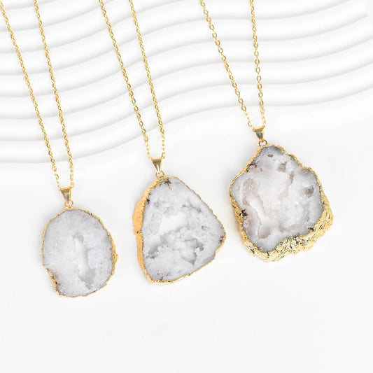 Electroplated Golden-Edged Natural Agate Slice Pendant Necklace