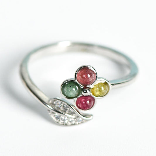 Etheric Aura Wire-Wrapped Flower Crystal Natural Stone Ring
