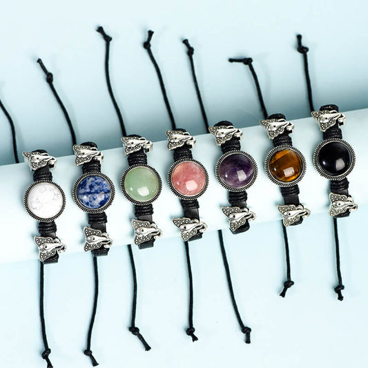 Etheric Aura Wolf Head Charm Crystal Bracelet