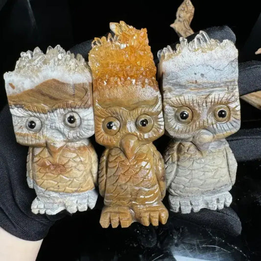 Etheric Aura Citrine Cluster Carved Craft Owls