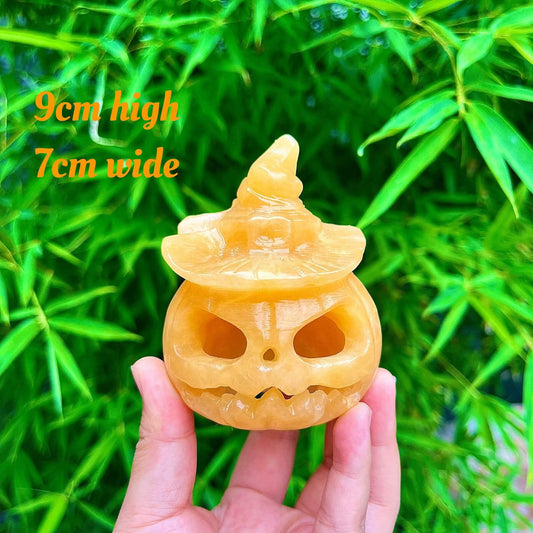 Natural Calcite Crystal Carved Pumpkin Lantern