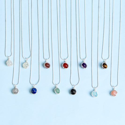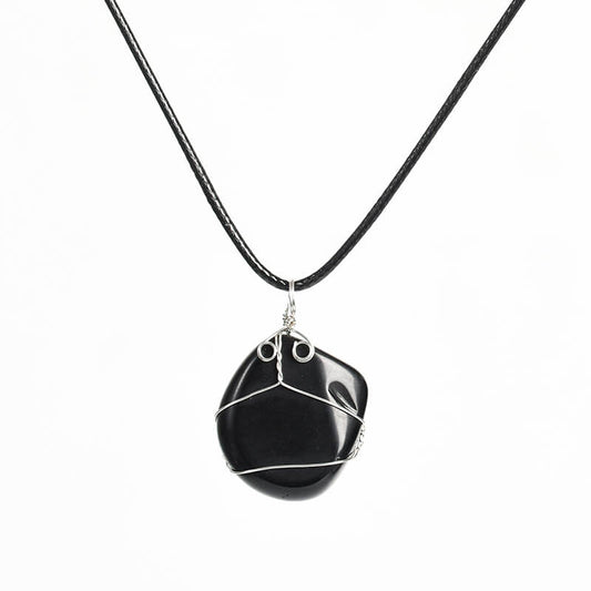Etheric Aura Wire-Wrapped Crystal Tumbled Stone Necklace