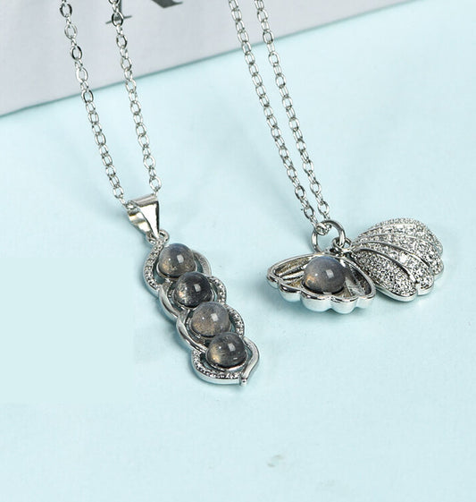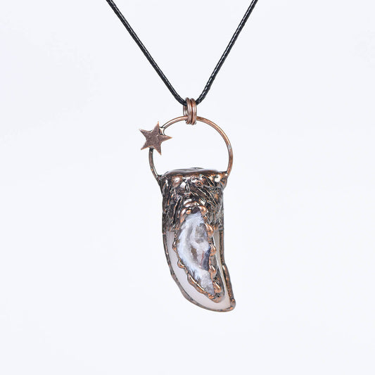 Etheric Aura Bean Pod Shell Inlaid Moonstone Pendant Necklace
