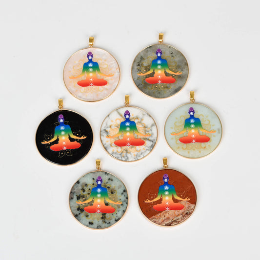 Chakra Color-painted Crystal Natural Stone Slice Pendant Necklace