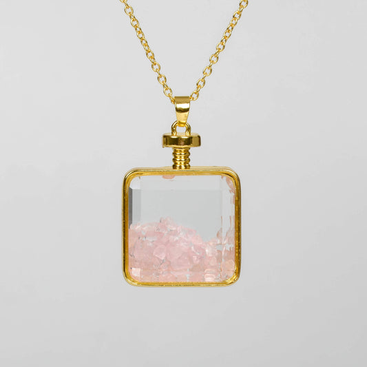 Etheric Aura Crystal Chip in Square Glass Pendant Necklace