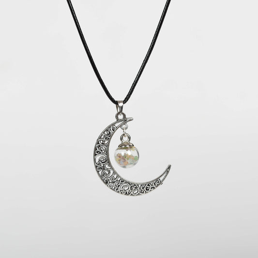 Etheric Aura Crystal Chip Glass and Moon Pendant Necklace