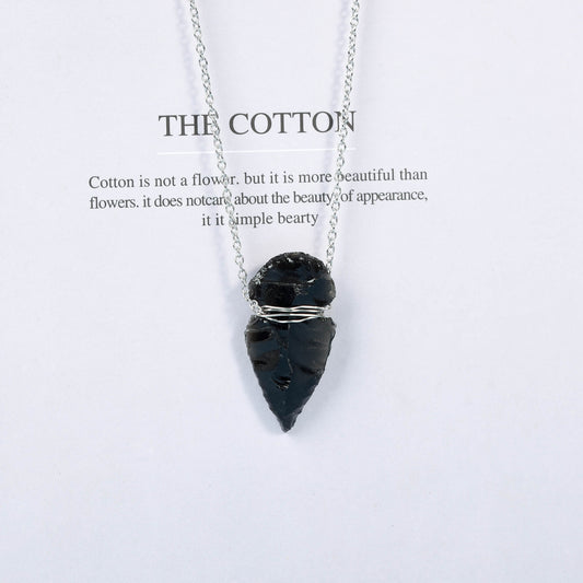 Wire-Wrapped Black Obsidian Arrowhead Pendant Necklace