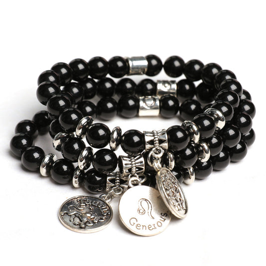 Etheric Aura Obsidian 12 Zodiac Bracelet